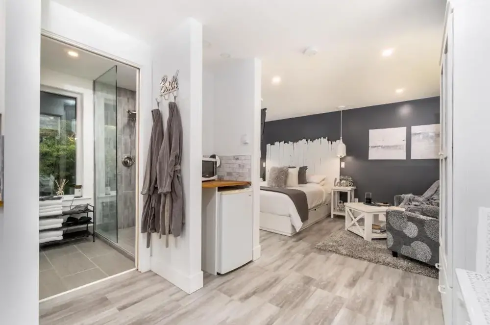 More information about Couple's Oasis at Horner ParkThe James-Fan Suites offers free Wi-Fi and complimentary on-site parking for guests staying at 908 Cobblestone Lane in Victoria, Canada. Each suite provides modern conveniences while maintaining privacy, making it ideal for travelers seeking comfort without sacrificing independence. Nearby, Starbucks is just two minutes away by car, offering quick access to coffee and light refreshments.